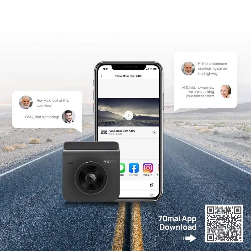 مع شبكة WiFi مدمجة ، يتصل A400 بتطبيق 70mai ، بحيث يمكنك بسهولة مشاهدة لقطات في الوقت الفعلي والتقاط الصور وتنزيل الملفات على هاتفك!