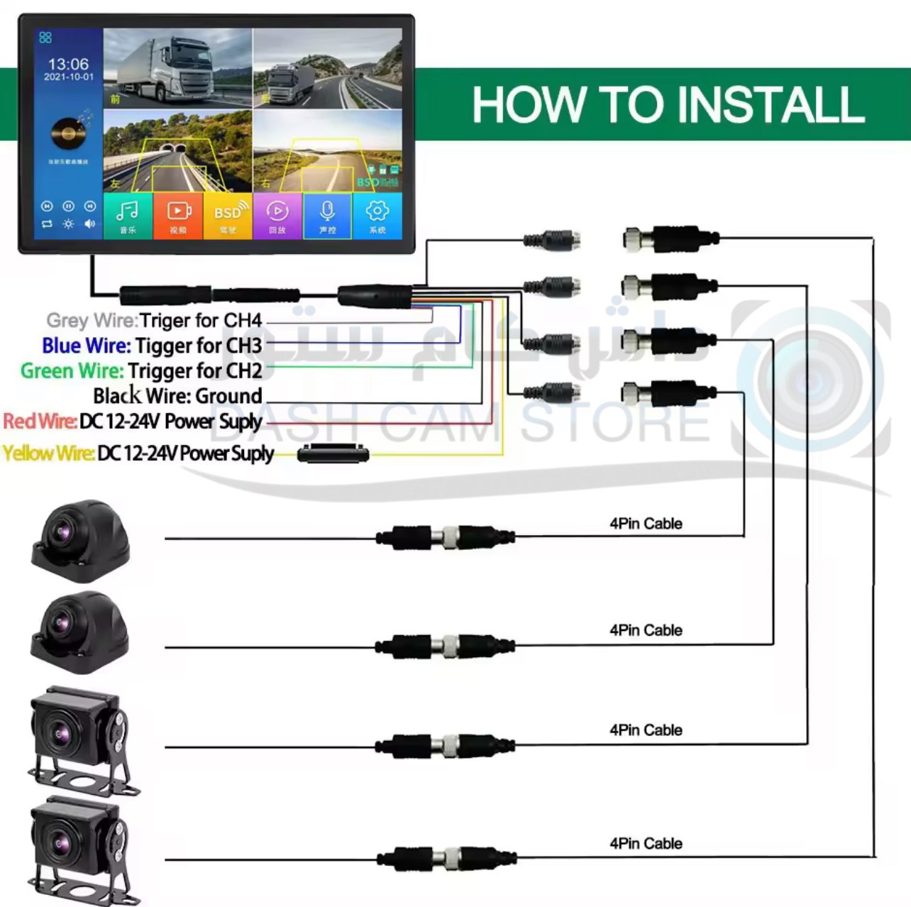 • مدخل فيديو 4 قنوات*720P/1080P