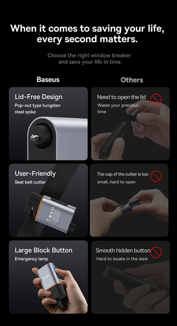 مع القدرة على قطع أحزمة الأمان ، يمكن أن تساعدك هذه المطرقة على الهروب من سيارتك في حالة الطوارئ.